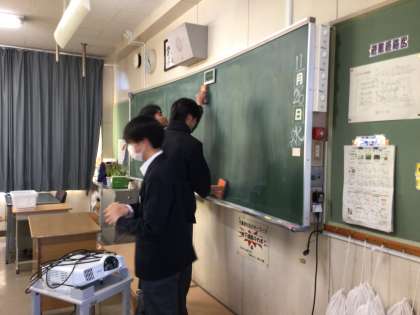 午前中の休み時間の様子です。黒板を消している生徒たちを発見。このうちの誰かが係で、それを友達が手伝っているのでしょうか。「おっ!えらいね!」と声をかけるとさらに張り切って仕事をする少年たち。微笑ましいです。