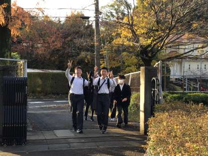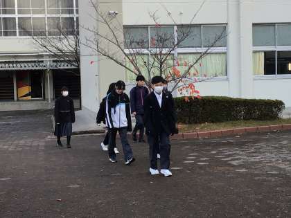 いろいろな服装で登校してくる生徒たち。気温に合わせて工夫して登校してください。学校指定のウインドブレーカーなどもありませんしマフラーや手袋もOKです。