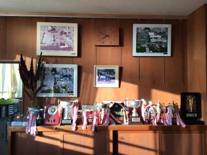 校長室にはたくさんの優勝カップや優勝旗が飾ってあります。生徒たちの汗と努力の結晶です。令和5年度から移行が進んできた部活動ですが、次年度の夏(正式には9月)から、いよいよ現在の部活動が「とよクラ」に形を変えて展開されます。現在、スムーズに展開されるように準備を進めているところです。