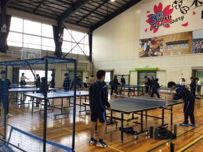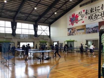 写真は今日の午前中の卓球部の練習風景です。練習開始時刻前に体育館に地域指導者が4名来てくださり、準備の段階から生徒の様子を見てくださっています。練習が始まると数台ある卓球台に分かれて、台の横でフォームなどの指導をしてくださっていました。個に合った丁寧な指導に頭が下がります。