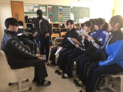 先週の金曜日に撮った写真です。3年生は受験に向けて面接練習を行っています。