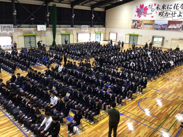卒業までの登校日は残り8日となりました。今日から卒業式の練習が始まりました。卒業式は学校の儀式の中で最も厳かで最も大切にされているものです。生徒たちが3年間を振り返り、人生の節目の一つとして心に刻むもの、それが卒業式です。卒業生と在校生が思いを響き合わせて、素晴らしい門出の式になるよう、残りの時間を大切にしていきたいと思います。