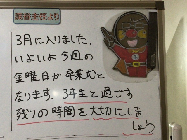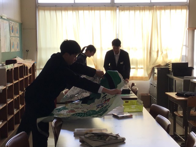今日の3、4時間目に3年生がお別れ学年レクリエーションを行います。早めに登校した生徒たちが忙しそうに準備をしていました。忙しそうでしたがとても楽しそうでした。