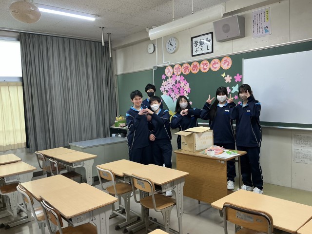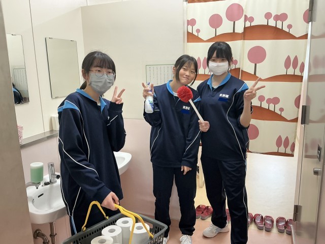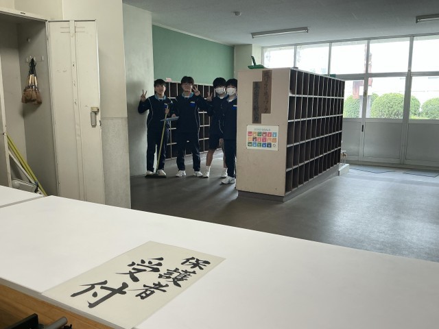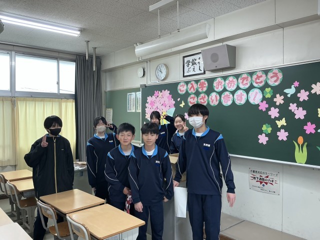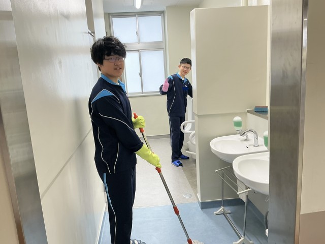 1年生の教室をとても綺麗に飾り付けてくれました。トイレ掃除はあまり人気のない掃除場所ですが、後輩のためならと笑顔で頑張ってくれました。来賓玄関も昇降口も校舎の周りもピカピカです。