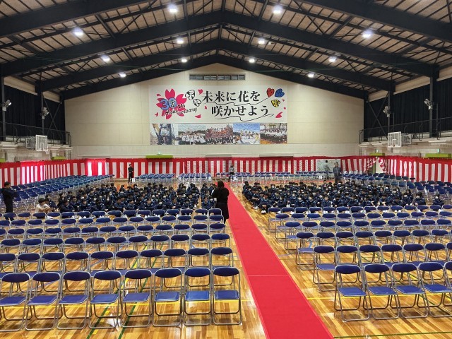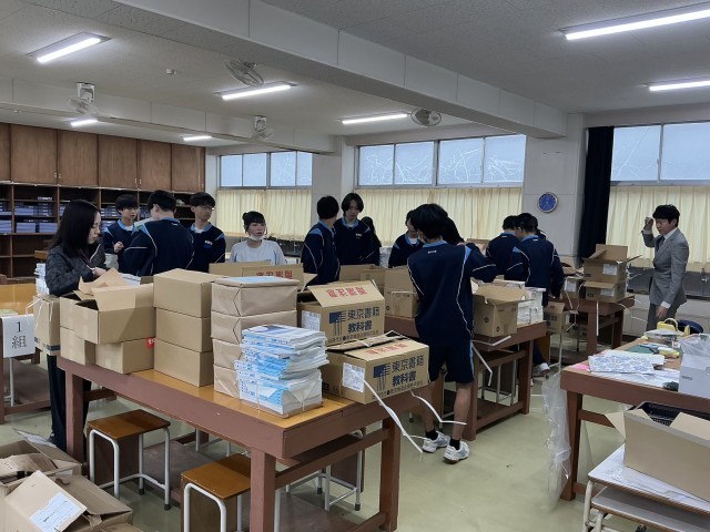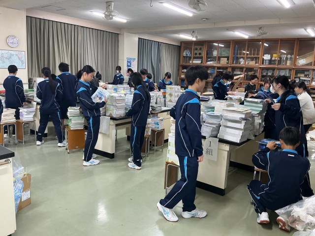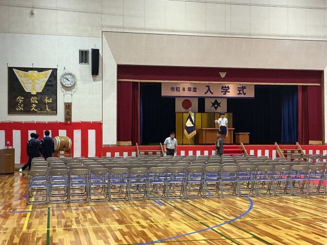 新しい箸は、卒業生が作ってくれた綺麗な箸袋に丁寧に入れてくれました。大量の教科書も間違いのないように慎重に数えてくれました。すっかり準備が整った会場では、代表生徒のリハーサルが行われ、ここでも「さすが3年生だな」と感じました。3年生の皆さん、後輩のために頑張ってくれてありがとう! 明後日から始まる学校生活でも素晴らしい姿をたくさん見せてくれることを期待していますよ。