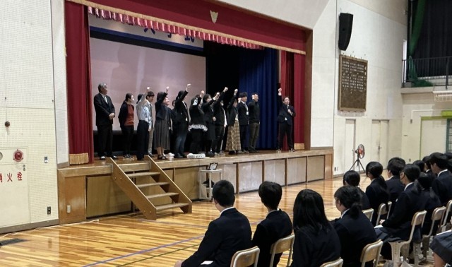 その後、生徒指導主事の先生と一緒に「愛される末中生」を目指して、学校生活のきまりなどをみんなで確認をしました。誰から見られても、よい印象をもってもらえるような末中生を目指していきます。