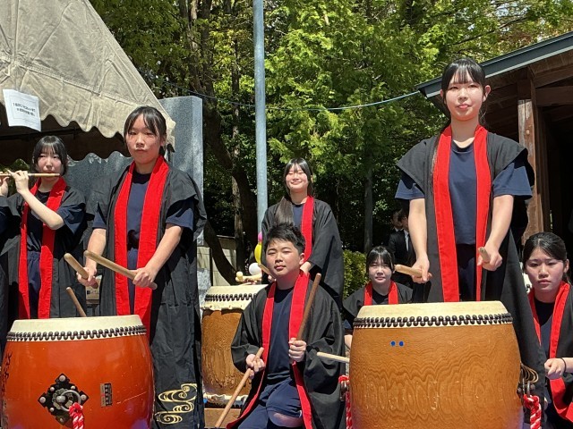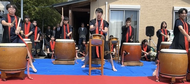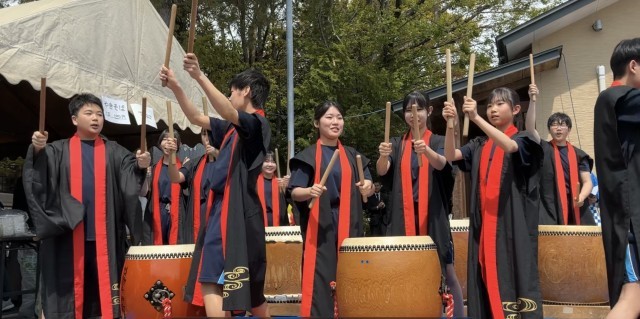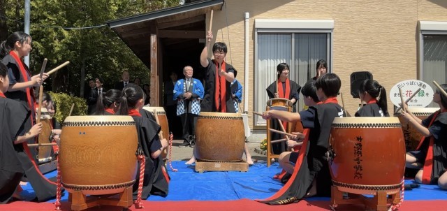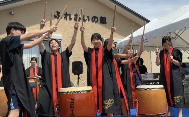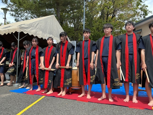 汗ばむくらいの陽気の中、永覚新町「春のふれあいまつり」が区民会館で行われ、オープニングで末野原太鼓が披露されました。本校の太鼓部の生徒たちによる迫力ある末野原太鼓は、地域でも有名なようで、多くの方が聴き入ってみえました。太鼓の演奏に合わせて、聴衆も一緒に手拍子をしたり掛け声をかけたりするなど、お祭りを盛りげるのにぴったりなオープニングとなりました。
