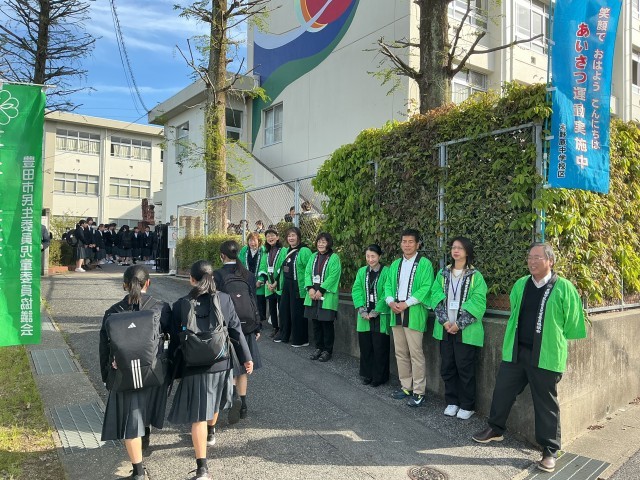 本校の学区には31名の民生委員の方がおみえです。今日は、3つの門に分かれて、挨拶運動をしていただきました。たくさんの民生委員さんに声をかけていただき、生徒たちはちょっぴり照れくさそうでしたが、しっかり挨拶を返すことができました。こうやって地域の方に見守っていただけることは大変ありがたいです。1年間,よろしくお願いいたします!