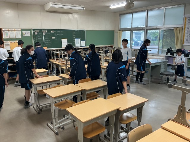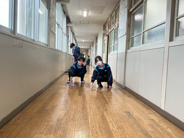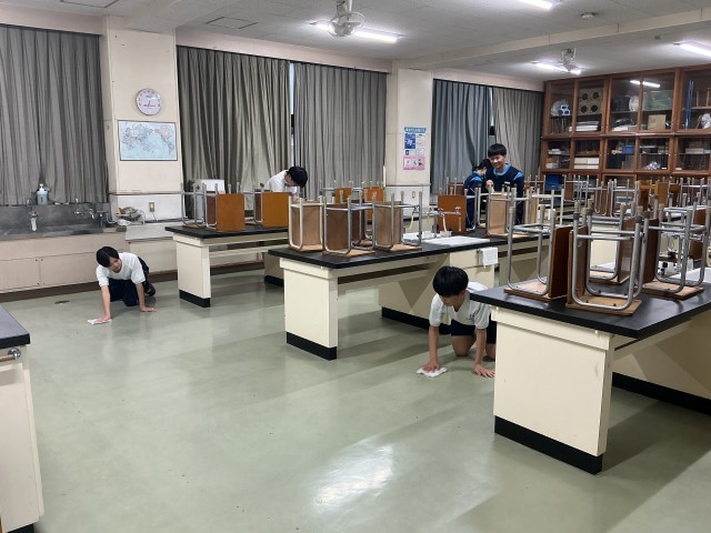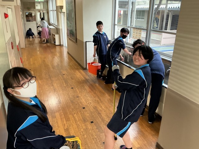 清掃活動が始まりました。昨日は手順等をみんなで確認したので、実際には今日がスタートでした。迷子の1年生を優しく案内する3年生がいたり、「末中拭き」で一生懸命に床を綺麗にする生徒がいたり、みんなで校舎を綺麗にしようと頑張っていました。これからも頑張って綺麗にしていきましょう。