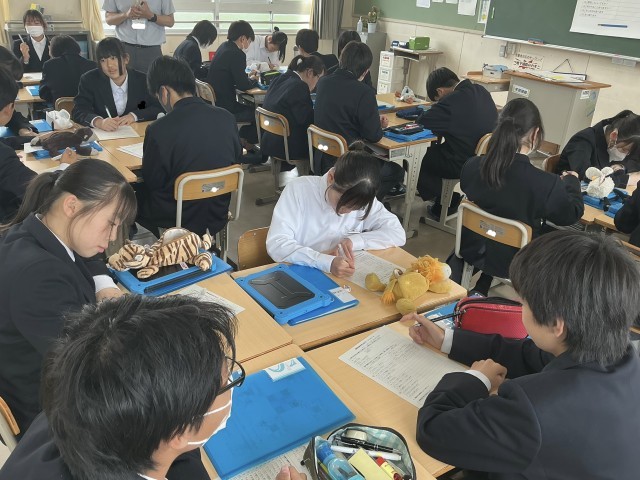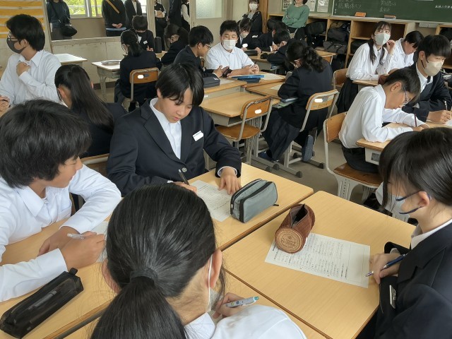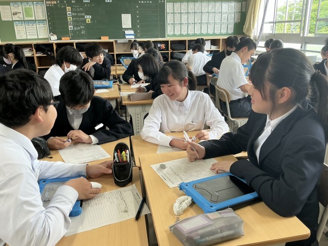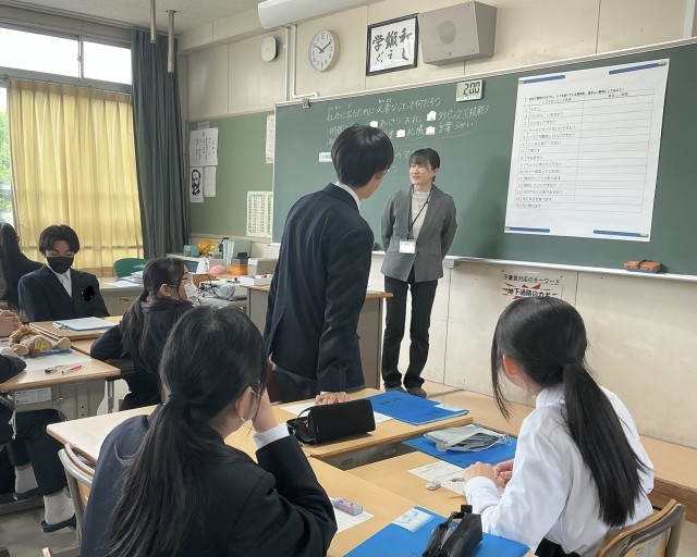2時間目は、2年生の授業参観でした。6月の職場体験にむけて、「正しい言葉遣いができるようになろう」と学習を進めました。どの学級の子どもたちも、「先に弁当を食べます」の丁寧な言い方が分からず苦戦していました。普段から丁寧な言葉遣いを心がけて、本番も上手に言えるといいですね。
