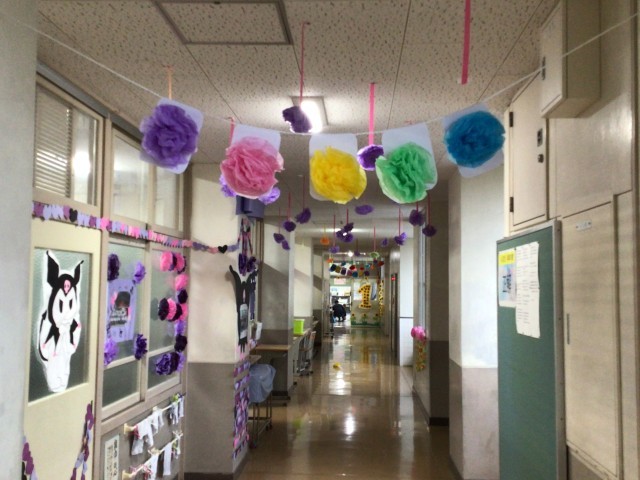 3年生フロアの廊下や各教室にはたくさんの飾り付けがされています。後輩たちが思いを込めて飾りやメッセージを準備しました。各学級のクラスカラーに合わせた飾りや、思い出の写真がたくさんありました。