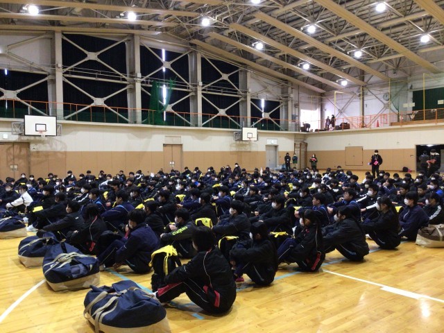 気温はマイナス7度。大きなつららが屋根から下がっていますが、日差しがたっぷりで荷物をバスから運んで少し歩いただけで体がポカポカしました。今から入所式を行います。
