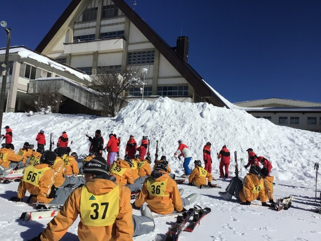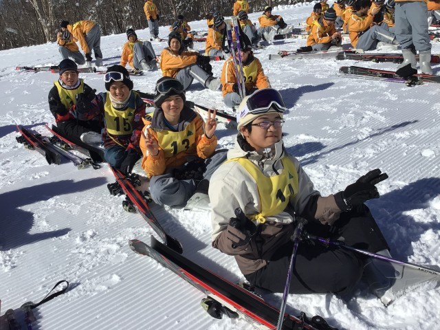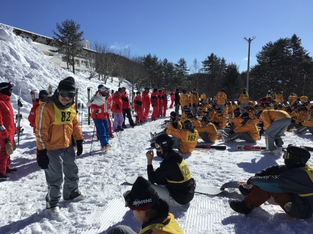 今から1回目の実習が始まります。初めてスキーを経験する子たちはブーツを履いてスキーやストックを持って歩くだけで大変そうです。