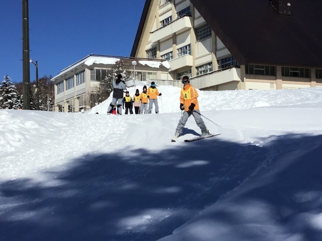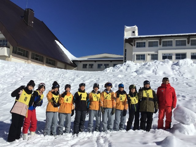 ボード班(経験者)はインストラクターとターンの練習をしていました。スキー経験者の班はさっそく林間コースに出掛けていきました。スキーやスノボは普段使わない筋肉を使いますから、きっと明日は筋肉痛でしょう。初めてのウィンタースポーツだという人は、天気、雪質ともに最高の出会いができたと思います。たくさん運動しているのでお腹が空くだろうと思います。夕飯をしっかり食べましょう!