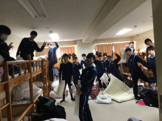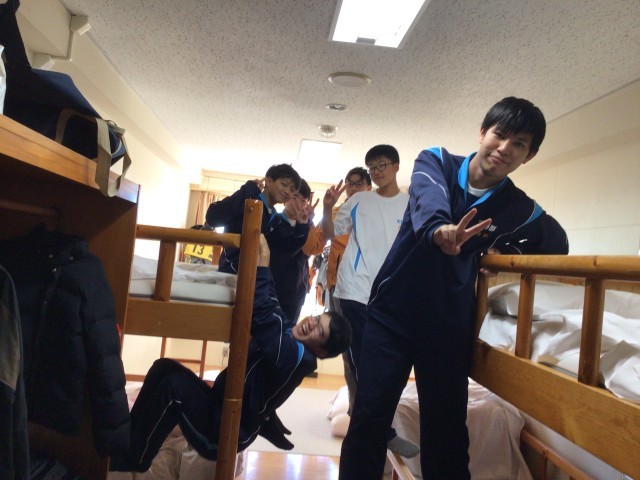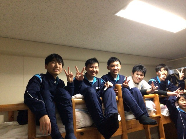 実習を終えて部屋に戻った生徒たち。朝から休む間もなく忙しかったですね。やっと部屋で少しのんびりできますね。この後17時ごろからは夕食とお風呂です。たくさん食べて、お風呂でさっぱりしましょう。