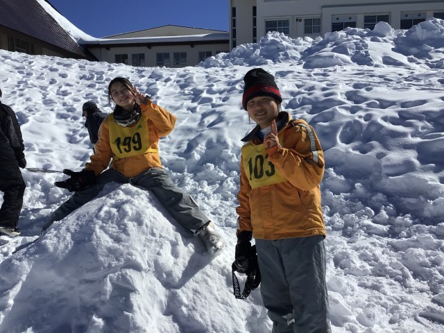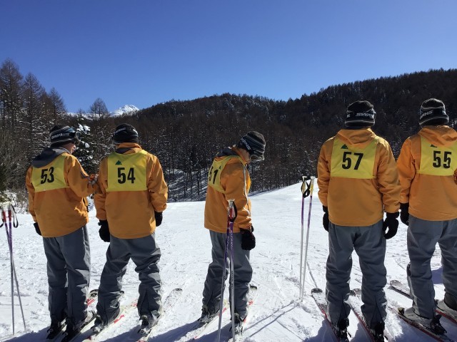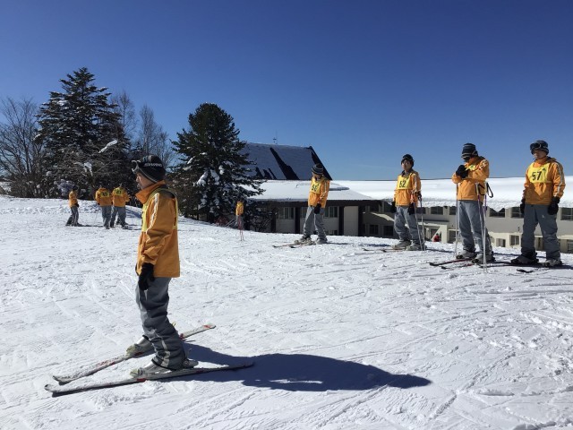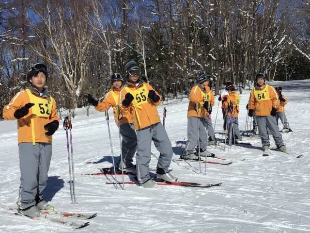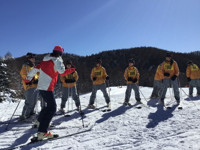 スノーボードチーム。基本はスキーですが滑ることができる生徒であればスノボも可としています。初心者の班も含めて今日は多くのチームがリフトに乗ることでしょう。きっと遠くの山々が見渡せて最高の1日になると思います。体力を使うと思いますが楽しみましょう!