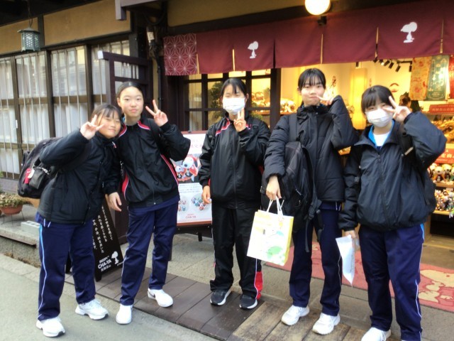 良い天気です。お家の人たちの顔を思い浮かべながらお土産を一生懸命に選んでいるんだろうな、と生徒たちを見て思いました。さるぼぼの形をしたアイスキャンディーを手にして嬉しそうにしている子たちもいました。楽しんでいます。