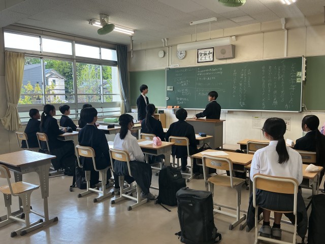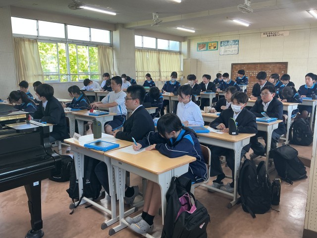 朝の会が始まりました。どの学年も静かに読書をしたり、先生からの話を聞いたりしていました。1年生のあるクラスでは、担任の先生が席を外している間もとても静かに待つことができていて、中学生としての意識の高さを感じました。