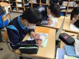 1年2組の国語の授業の様子です。シジュウカラは「ジャージャー」という鳴き声を発す...