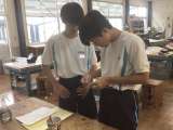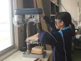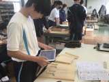 糸のこぎりで板を切り取った状態のものをタブレットで撮影している生徒を発見。写真に...