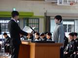 本日、地域の企業である豊田汽缶株式会社 代表取締役社長 勝田剛教 様より、中学...