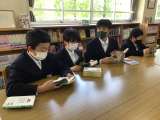 図書室では1年2組が国語の授業をしていました。中学校でも図書室はよく使いますので...