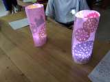 3年8組の生徒たちが作ったライトです。持って帰って部屋で灯すのが楽しみですね。ツ...