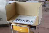 音楽室です。 リコーダー演奏を始められるように、各机に段ボール製のパーテーション...