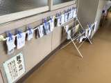 3年生廊下には、最後の大会に臨む3年生に向けて、2年生からの激励メッセージが掲示...