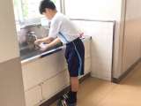 1年1組の教室のそばにある手洗い場です。細かいところまでしっかりと掃除をする姿が...