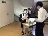 朝の時間、渡り廊下で福祉委員会が活動していました。家にある読まない本やCDをお金...