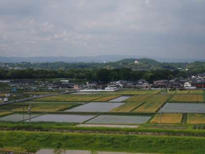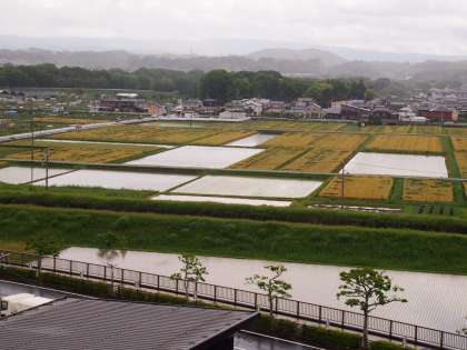 田植えのあと、水が満たされ、鏡のように見える田んぼは、校舎3階からの美しい景色の一つです。本校から平井小学校に向かって伸びる通学路はまさに、その鏡の田んぼを貫くように走っています。新入生も通学に慣れた頃と思いますが、毎年雨の時期になると、自転車のスリップ事故が起きています。時間に余裕をもって、安全に通学できることを願っています