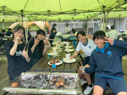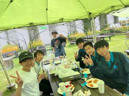 3組 強風にも負けず,屋上バーベキューを楽しんでます!