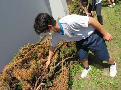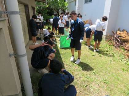 6月13日(火)に、生徒会主催の「清掃ボランティア活動」がありました。たくさんの生徒が応募してくれました。学年ごとに分かれて、草取りで集めた草や木をコンテナの中に入れました。体育倉庫や体育館裏はふだん、なかなか清掃できない場所ですが、生徒同士で協力して活動することで、見違えるようにきれいになりました。