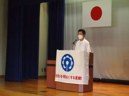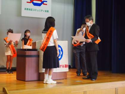 高橋交流館の催しとして、標語・ポスターの表彰、3年生の代表生徒の主張発表、吹奏楽部の演奏が行われました。これは社会を明るくする運動の一環として進められているものです。コロナ禍の中では、縮小となっていましたが、本年度は高中生の司会のもと、多くの観客とともに盛大に行われました。今後も次世代をつくる生徒の活躍の場が増えていくことを願います。