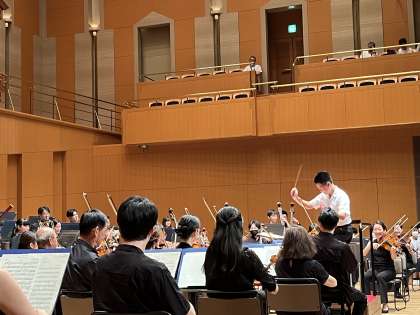 また,演目の中で各学校の代表生徒による指揮者体験がありました。指揮の振り方次第でオーケストラの演奏の違いがでることを実感するとともに,その違いを楽しむことができる貴重な体験でした。※1枚目の画像の指揮者は,高橋中の代表生徒です。