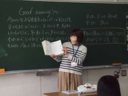 よみきかせ灯る挿話よ秋うらら 公開日 2023/11/14 更新日 2023/11/14 お知らせ 絵本の読み聞かせがありました。ひとつのお話が生徒の心に灯るときでしょうか。そのときには目に見えなくとも、心に灯る絵本の一場面はきっとある。外を見ると、秋晴れの心地よい、のどかな日です。こんな日にお話の主人公が話しかけてきたらと思うとメルヘンです。