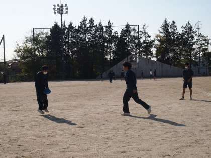 3年生の体育の時間でした。フリスビーを使って、体を動かす。頭を使う。笑顔が輝く。学校の大銀杏は、樹齢は分かりませんが、幹の太さからいって、本校の開校当時からあるのでしょうか。今年は色づくのが少しゆっくりしています。この大銀杏はきっと、これまでたくさんの生徒の姿を見下ろしたことでしょう。