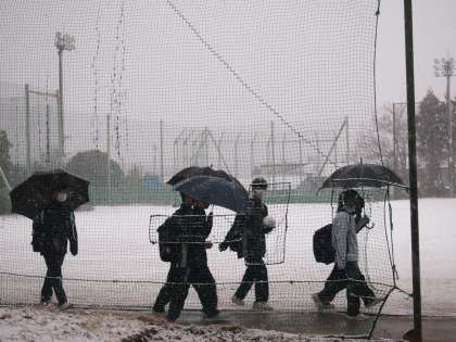雪の玉届くや学校の朝よ 公開日 2024/01/24 更新日 2024/01/24 お知らせ この冬、はじめての雪、昇降口で立哨活動をしていると、小ぶりのスイカくらいの雪玉をもって登校する生徒がいました。実は雪の朝に毎年見かける光景なのです。雪が珍しいから、雪だるまにしてみたくなる。子供っぽいですが、その心持はわかります。来週からは自然教室が行われます。自然の脅威も十分に理解しながら、雪世界を楽しめるとよいです。