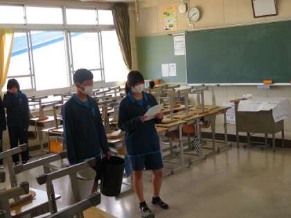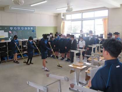 3年生から1年生へ清掃の仕方を継承 公開日 2024/04/15 更新日 2024/04/15 お知らせ 高橋中の清掃の仕方を今年度も3年生が無事に1年生に伝えることができました。聞くところによると10年以上も続いているようです。今の1年生が3年生になった時にも清掃の仕方を伝えられたらよいですね。