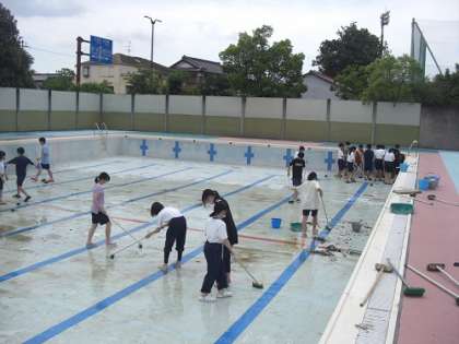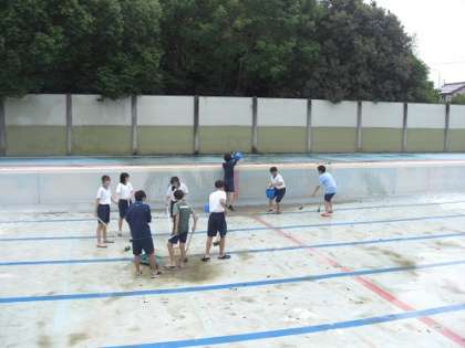 6月13日(木) プール清掃の様子です。