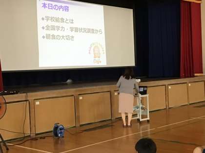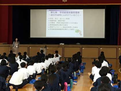 1年生は「食に関する指導」として、美里中の栄養教諭の方を招聘し、学習を深めました。学校給食の法律的な内容やその歴史からはじまり、本校の実態も踏まえて、お話がありました。牛乳から摂取するカルシウムの大切さ、野菜にもカルシウムが含まれることなど毎日の給食の考えられた献立を知る機会となりました。また、食と学力の関係、朝食の大切さなどグラフや資料を通して学ぶことができました。今一度、給食について、再考できるとよいなと感じました。
