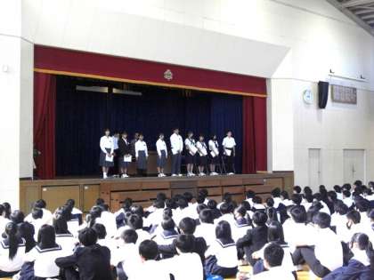10月11日(金) 全校集会・意見発表・認証式の様子2です。