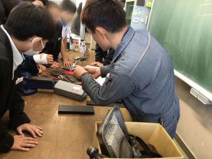 1年生の学年行事「働く人に学ぶ会」が行われました。10講座で展開し、一人2講座を受講する方法で、それぞれに1時間、様々なお仕事をされている方から学びました。短い時間でしたが、プロの使う工具に興味津々で身を乗り出して拝聴する姿に感銘を受けました。2年生になると例年、職場体験が実施されます。今回の経験はそこに繋がる布石になったと感じます。