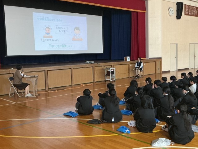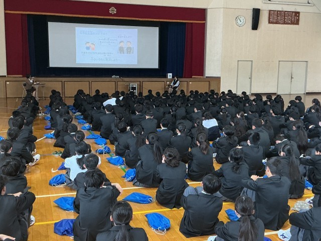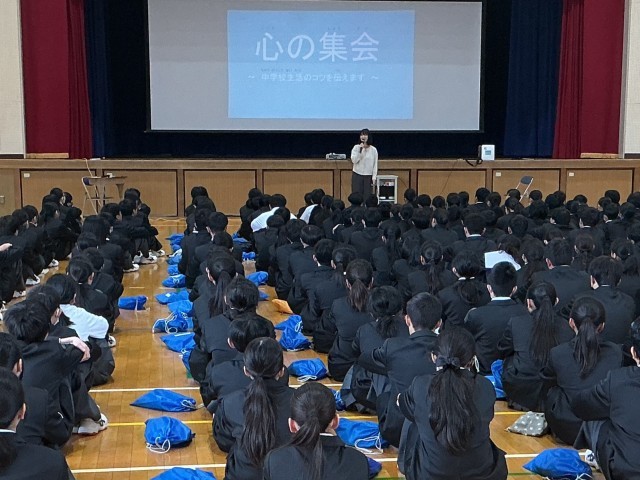 1年生 心の集会 公開日 2026/04/14 更新日 2026/04/14 お知らせ 3時間目に1年生対象の「心の集会」が行われました。悩んだときや不安に感じたときに誰に相談したらよいか、どのように相談したらよいかをスクールカウンセラーの先生のお話を聞きながら確認しました。また、相談体験として取り組む、スクールカウンセラーとの「お手紙交換」について説明を聞きました。これからの生活、一人で悩みを抱え込まず、安心して先生たちを頼ってほしいと思います。