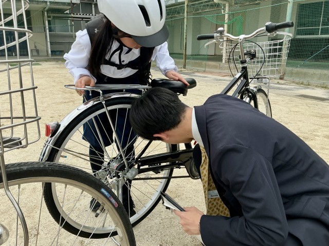 自転車点検 公開日 2026/04/14 更新日 2026/04/14 お知らせ 下校時に自転車通学者を対象に自転車点検を行いました。担任の先生と一緒に項目ごとに点検をしました。安全に登下校するためにも、自転車の整備はいつも万全にしておきたいですね。