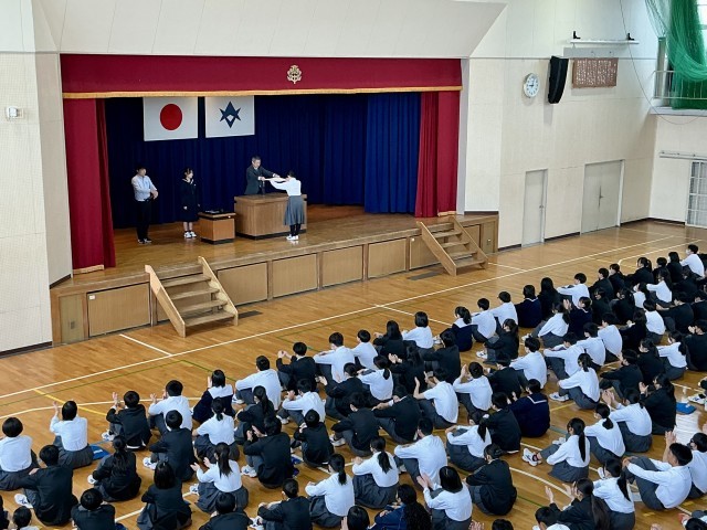呼名への返事や、温かい拍手が体育館に響く、気持ちのよい朝でした。