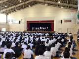 10月11日(金) 全校集会・意見発表・認証式の様子1です。