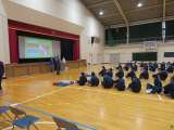 いざというときに、周りの人の命を救えるようにと、2年生が心肺蘇生法として、胸骨...