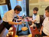 3組は夕飯の様子です。 店員さんに作り方を伝授してもらい,もんじゃ焼きに挑戦です...
